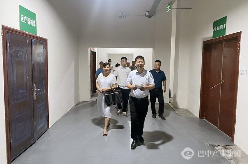 (圖為專家組查看藥械庫房分區(qū)現(xiàn)場)
