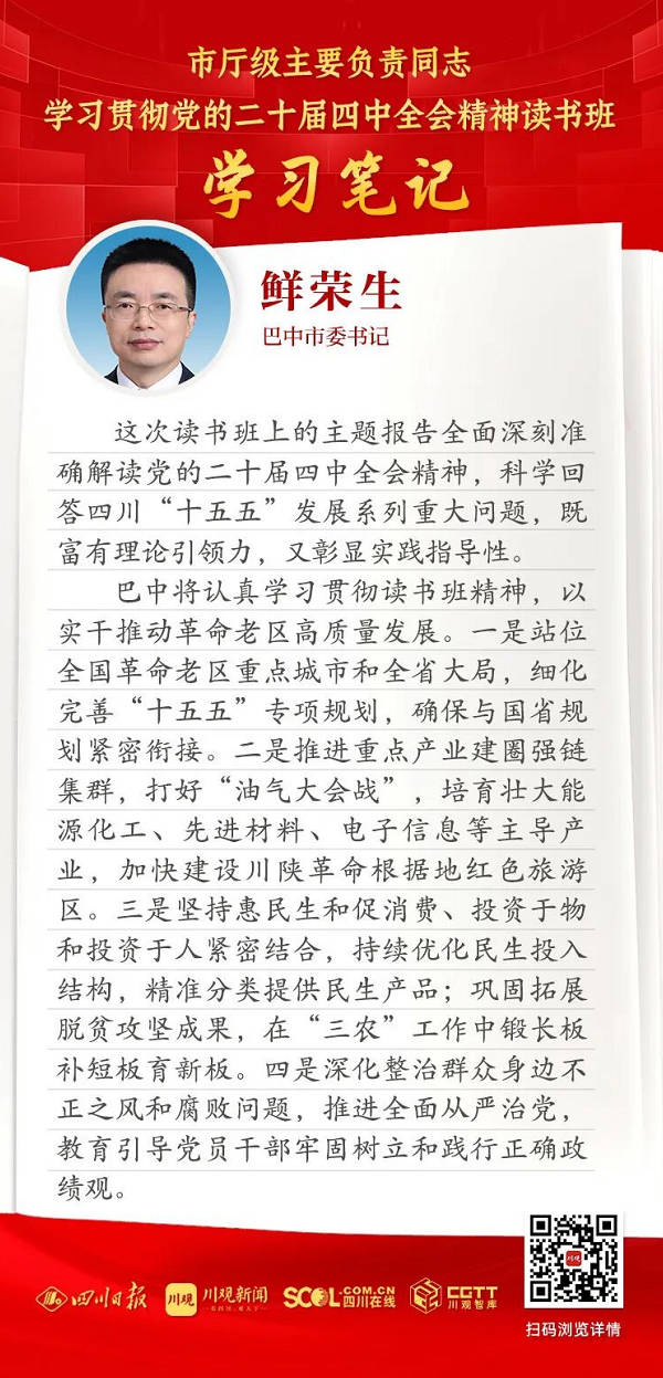 這次讀書班上的主題報告全面深刻準確解讀黨的二十屆四中全會精神,科學回答四川“十五五”發(fā)展系列重大問題,既富有理論引領力,又彰顯實踐指導性。