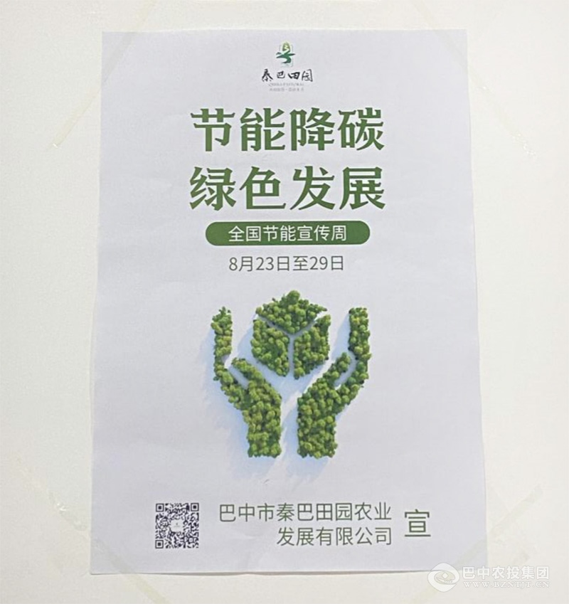 8月23日至8月29日是全國第31個(gè)節(jié)能宣傳周。秦巴田園公司以?“節(jié)能降碳·綠色發(fā)展”、“低碳生活·綠見未來”為主題開展宣傳活動(dòng)。