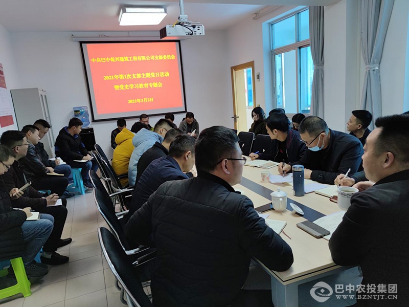 2021年3月2日,乾興公司召開黨史學(xué)習(xí)教育動(dòng)員大會(huì),認(rèn)真學(xué)習(xí)貫徹習(xí)近平總書記在黨史學(xué)習(xí)教育動(dòng)員大會(huì)上的重要講話精神。支部書記胡彬?qū)ΤB(tài)化、制度化、規(guī)范化開展黨史學(xué)習(xí)教育工作