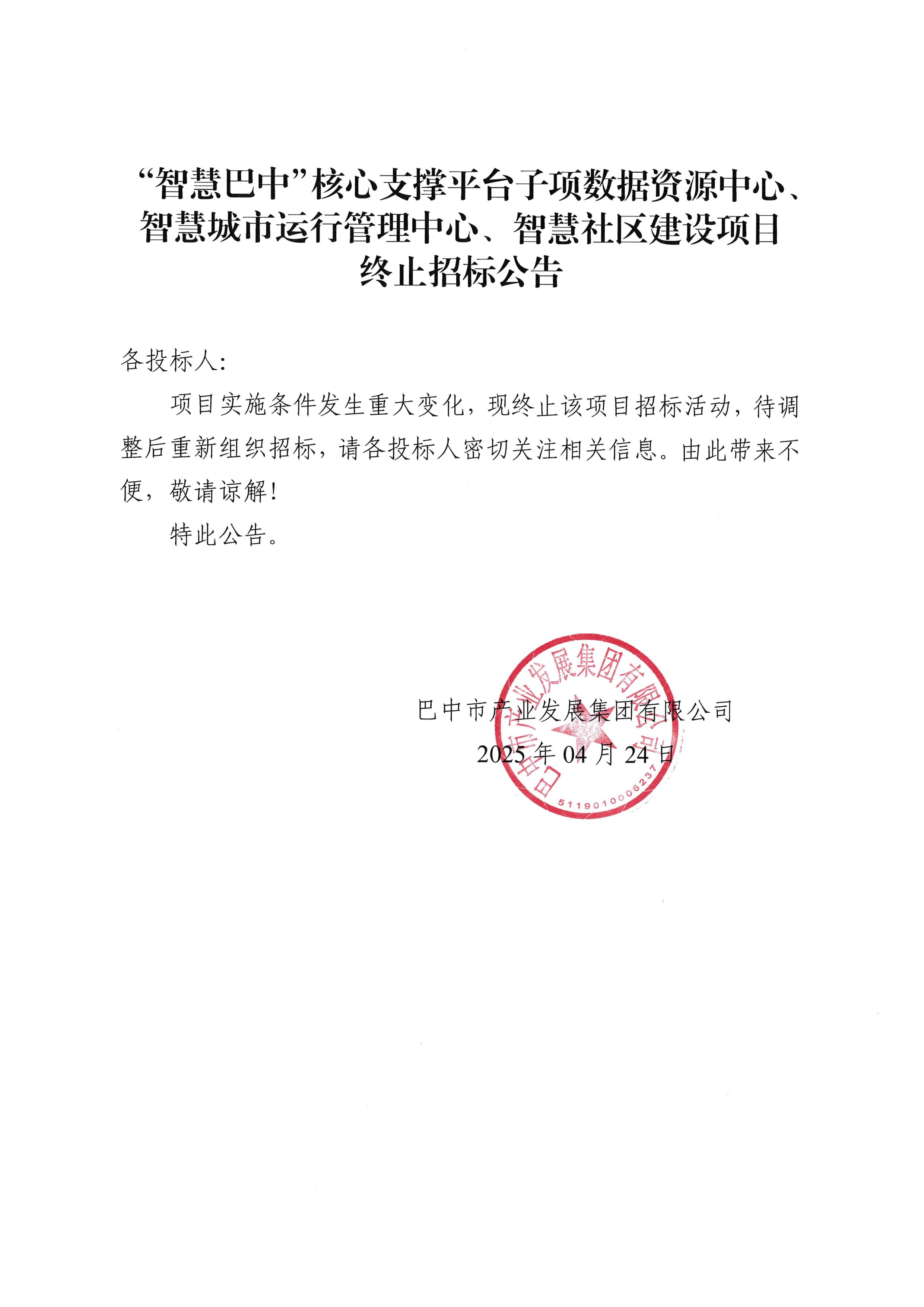 “智慧巴中”核心支撐平臺(tái)子項(xiàng)數(shù)據(jù)資源中心、智慧城市運(yùn)行管理中心、智慧社區(qū)建設(shè)項(xiàng)目終止招標(biāo)公告